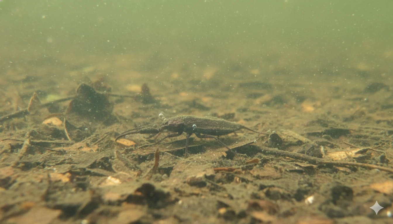 Nepa cinerea, commonly known as the water scorpion, is a fascinating aquatic insect recognized for its elongated body and tail-like breathing tube. It is commonly found in still or slow-moving waters such as ponds, lakes, ditches, and wetlands. This species is an ambush predator, usually hiding in mud or among aquatic plants. It preys on insect larvae, tadpoles, and even small fish, capturing them with its raptorial front legs and feeding by sucking out their body fluids. It breathes atmospheric air using a long siphon that extends above the water surface. With excellent camouflage and specialized hunting adaptations, Nepa cinerea plays an important role in maintaining balance in freshwater ecosystems.